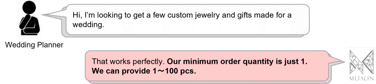 We can provide a variety of jewelry and gifts based on the image of the bride and groom as well as the theme of the wedding. Even if you don’t have a specific design, our skilled designers will support you from the design creation process.