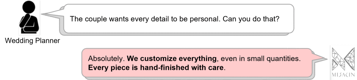 Mirakin offers one-of-a-kind wedding jewelry and gifts based on the bride and groom's image and the theme of the wedding. We are looking for wedding planners who would like to collaborate with Mirakin!