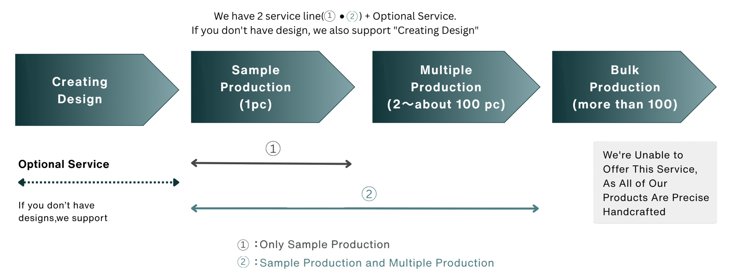 We offer single-piece sample production based on your design. This allows you to review the quality and craftsmanship before proceeding with a larger order.